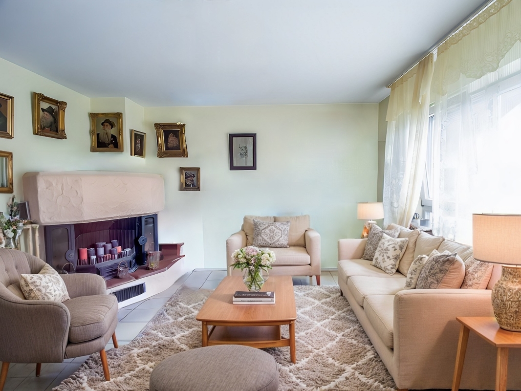 Das geräumige Wohnzimmer verfügt über einen einladenden Kaminofen, der nicht nur an kalten Wintertagen für wohlige Wärme sorgt, sondern auch eine behagliche Atmosphäre schafft. Vom Wohnzimmer aus gelangt man auf den Balkon, der zum Entspannen und Genießen der Sonne einlädt.