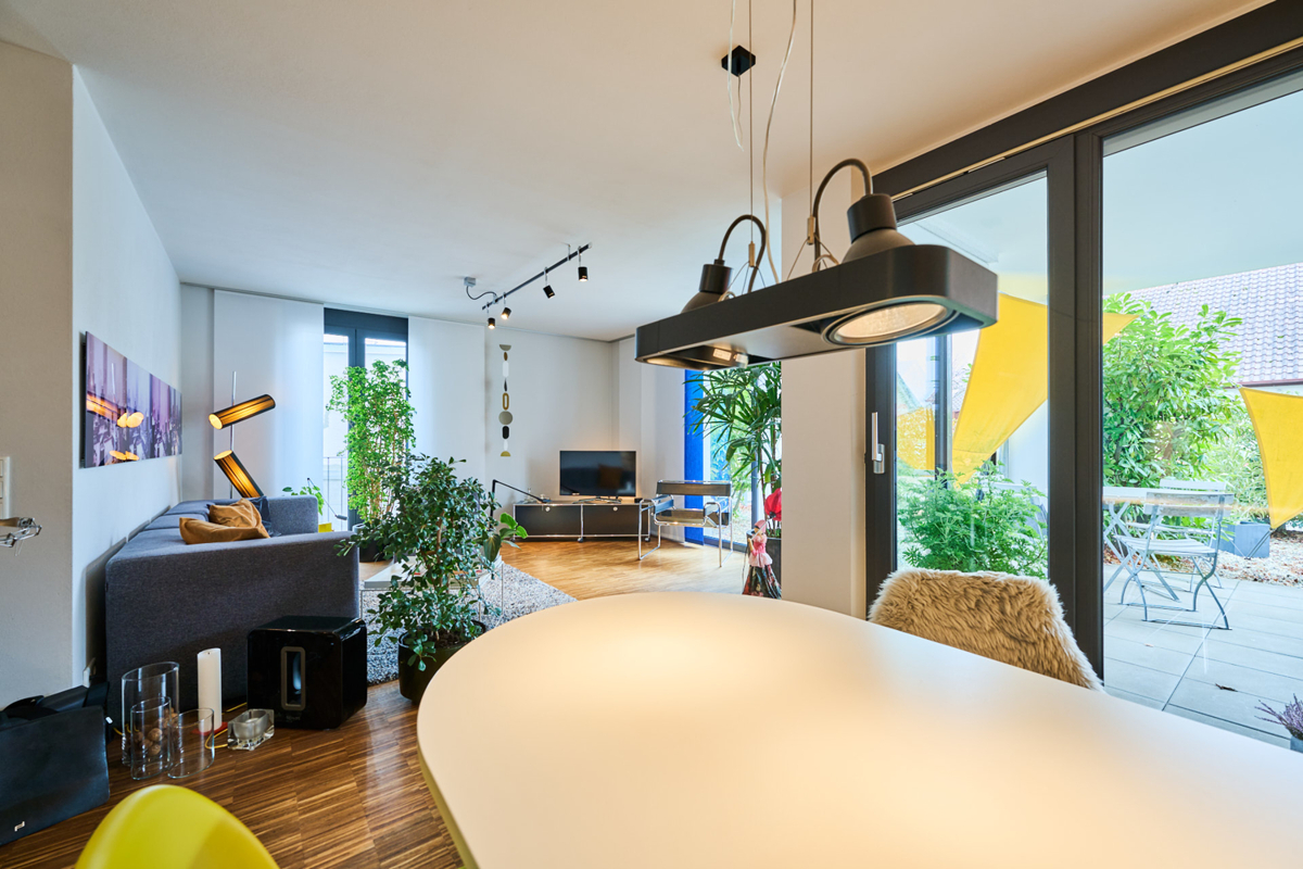 Großflächige, bodentiefe Fenster sorgen für helle, lichtdurchflutete Räume. Die Wohnung verfügt über eine Fußbodenheizung, die von einer effizienten Pelletsheizung gespeist wird. Ein SAT-Anschluss sowie ein DSL-100-Anschluss runden das Technikpaket ab. Ein Abstellraum im Keller sowie ein Tiefgaragenplatz gehören ebenfalls zur Wohnung.
