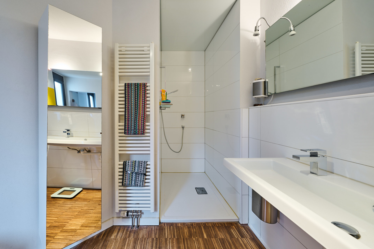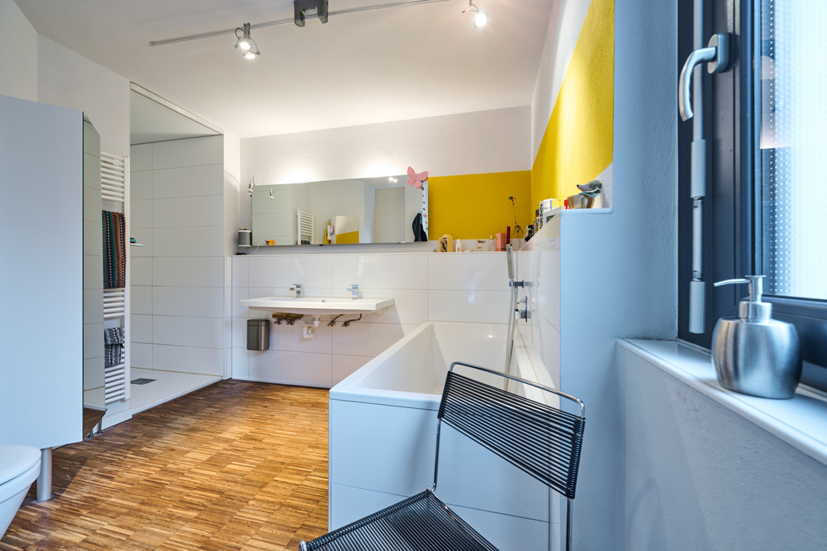Die barrierearme Gestaltung der Wohnung im Erdgeschoss und der Zugang zum Untergeschoss, in welchem sich ein Abstellraum, die Gemeinschaftswaschküche sowie die Tiefgarage befindet über den gemeinschaftlichen Aufzug, machen sie besonders komfortabel.