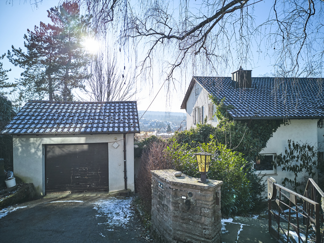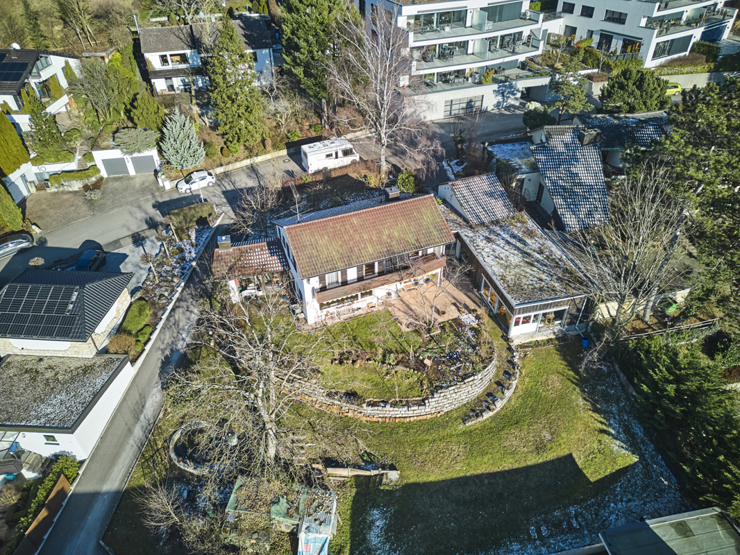 Das noch mit einem Einfamilienhaus bebaute Gesamtgrundstück befindet sich in bester Südhanglage von Dettenhausen bei Tübingen. Das Grundstück gewährt einen herrlichen Blick über den Ort bis zu den Wäldern des Schönbuch. Die Umgebung zeichnet sich durch große Grundstücke und herrschaftliche Häuser mit großen Gärten aus.