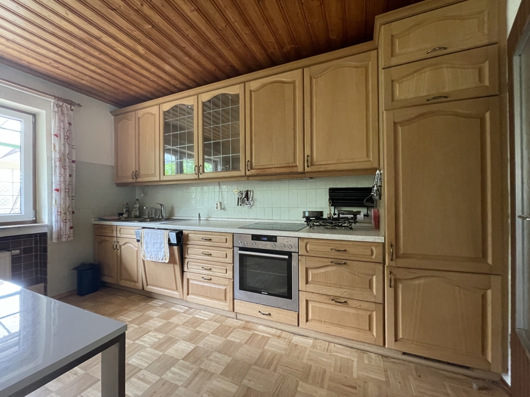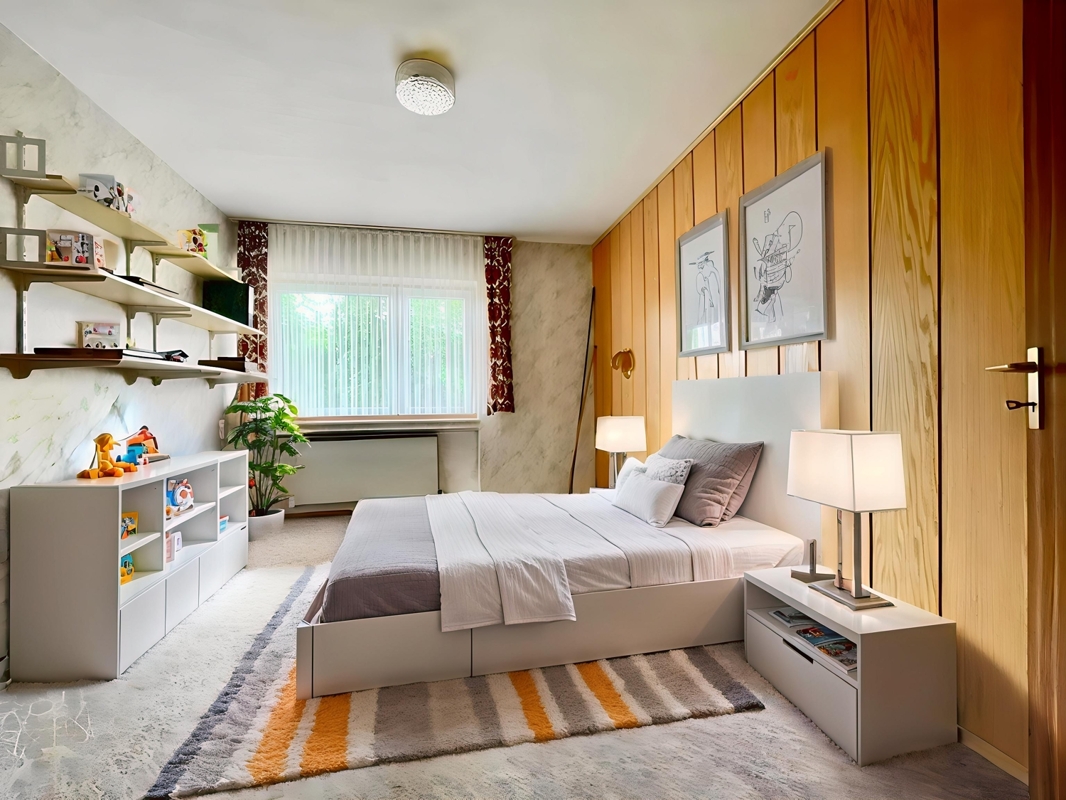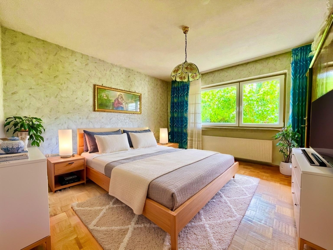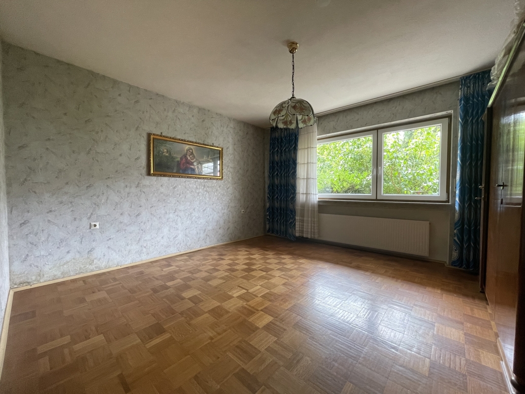 Dieses charmante Wohnhaus aus dem Jahr 1972 wurde in solider Massivbauweise errichtet und steht auf einem großzügigen Grundstück mit ca. 720 m² Fläche. Die Immobilie bietet vielfältige Nutzungsmöglichkeiten – ob als klassisches Einfamilienhaus für die ganze Familie oder mit separater Einliegerwohnung im Erdgeschoss und Wohneinheit im Obergeschoss.Auf rund 145 m² Wohnfläche verteilen sich insgesamt sechs gut geschnittene Zimmer auf Erd- und Obergeschoss. Im Erdgeschoss befindet sich eine Terrasse mit Zugang in den Garten, der viel Platz zur Erholung im Freien bietet. Eine liebevoll gestaltete Holzhütte schafft hier den idealen Rahmen für gesellige Abende im Grünen. Das Obergeschoss punktet mit einem großzügigen Balkon, der sich über die gesamte Hausbreite erstreckt und einen herrlichen Ausblick ins Grüne bietet.
