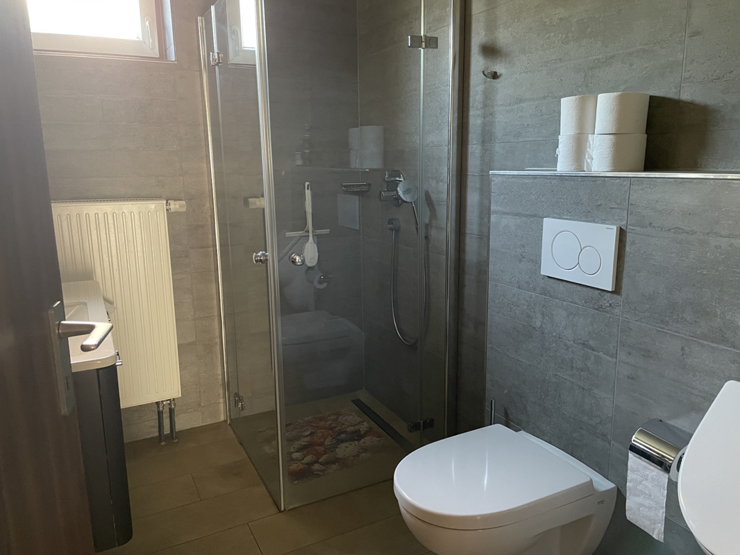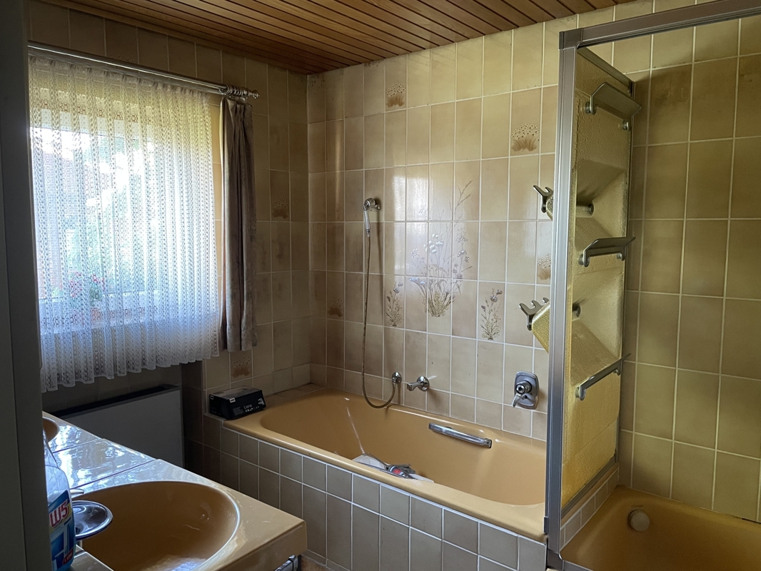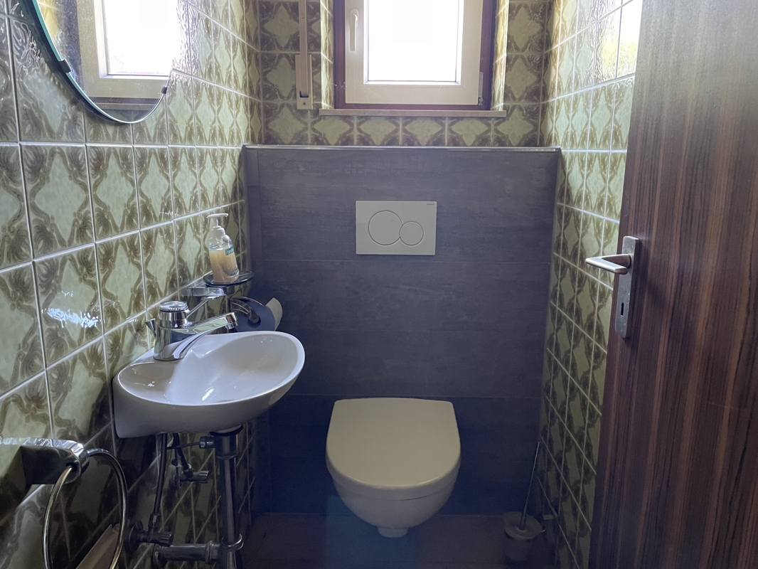 Das Haus verfügt über zwei gut ausgestattete Tageslichtbäder. Im Erdgeschoss befindet sich ein renoviertes Duschbad mit Waschbecken, WC, Dusche und Pissoir. Das großzügige Badezimmer im Obergeschoss ist mit Badewanne, separater Duschkabine und Waschbecken ausgestattet. Ein zusätzliches WC auf dieser Etage bietet weiteren Komfort – besonders praktisch für Familien.