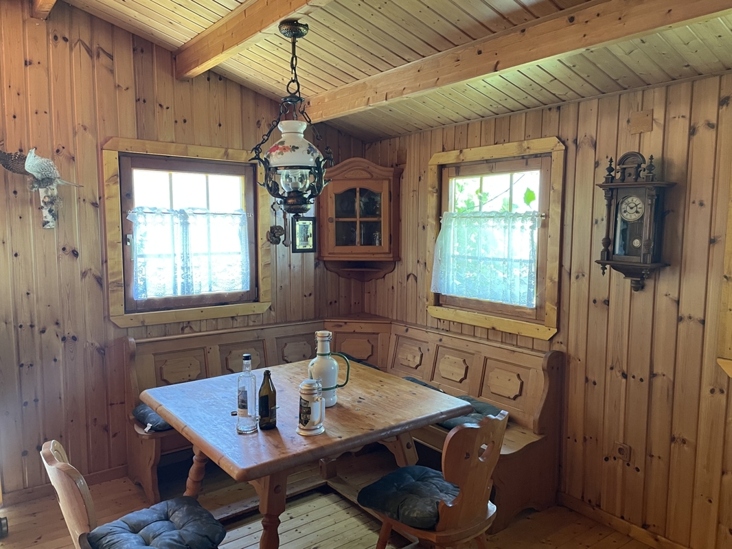 Im Untergeschoss befinden sich ein separater Abstellraum, ein Hobbyraum mit Waschmaschinenanschluss – derzeit als kleine Werkstatt genutzt – sowie der Heizraum. Eine Garage bietet weiteren Stauraum und schützt das Fahrzeug vor Witterungseinflüssen. Abgerundet wird das Angebot durch eine charmante Holzhütte im Garten, die zu geselligen Abenden im Grünen einlädt.