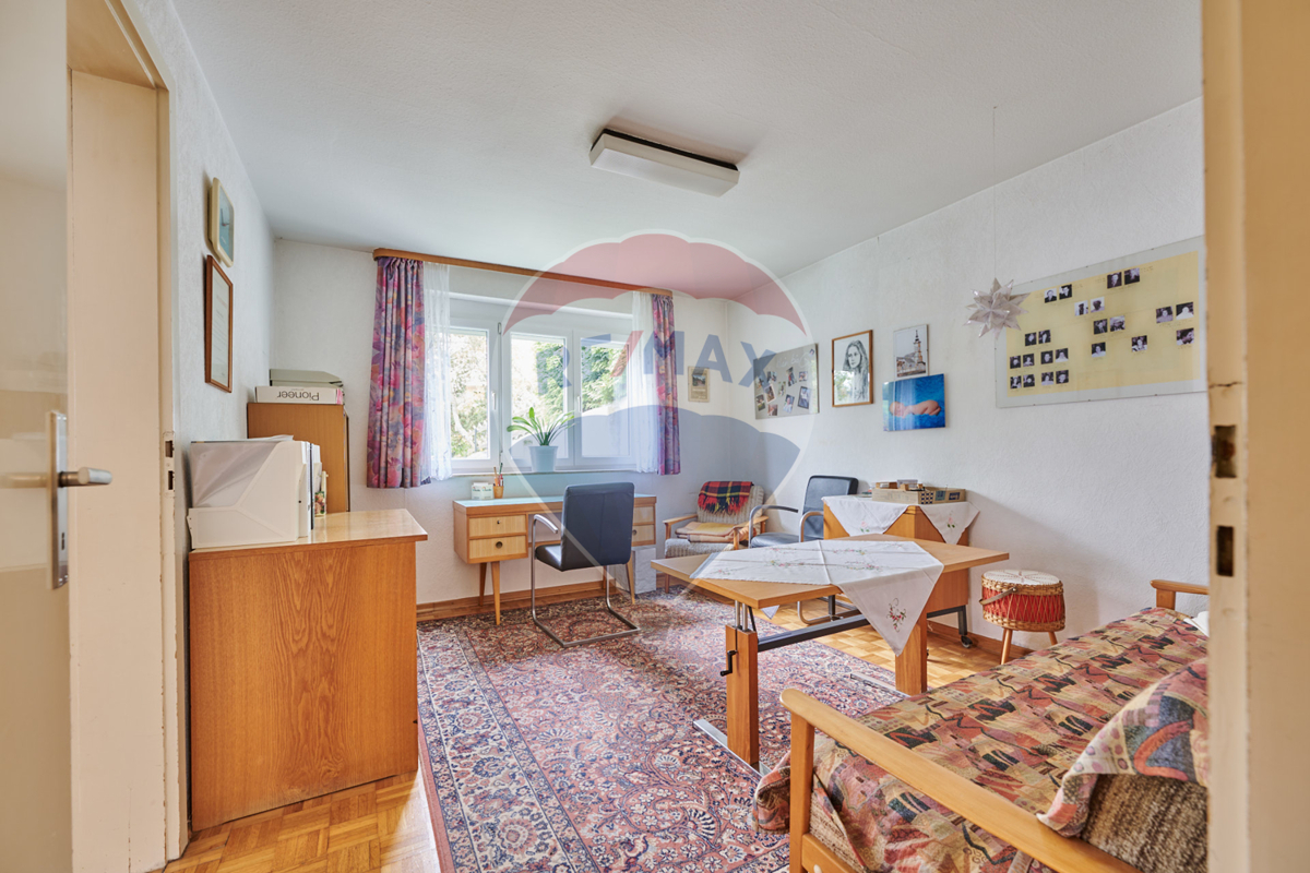 Das schmucke Einfamilienhaus wurde 1954 auf einem 724 m² großen Grundstück in Massivbauweise errichtet. Später konnte ein angrenzendes Grundstück von 239 m² erworben werden, um 1964 die beiden Garagen zu errichten und separat zu erschließen. Das gesamte Grundstück hat somit eine Größe von 963 m².Das bestehende Gebäude befindet sich in einem sehr gepflegten Zustand, bedarf jedoch einer umfassenden Modernisierung. Die Wohnfläche von ca. 134 m² verteilt sich auf 7 Zimmer sowie zwei Balkone.