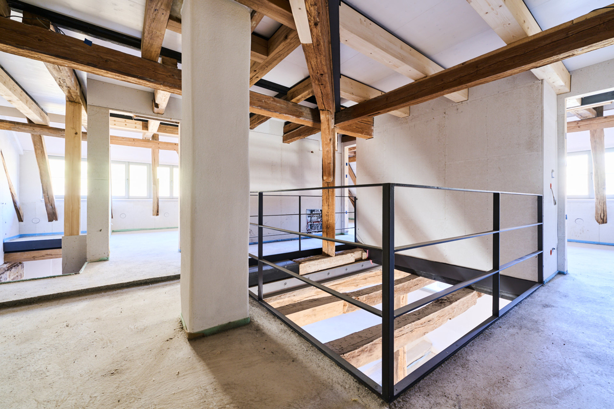 Das Raumambiente kann nur als "außergewöhnlich" beschrieben werden, was einerseits durch die erhaltene historische Bausubstanz, aber auch durch akzentuiert geschaffene, moderne Elemente erzeugt wird. Persönliche, individuelle Ausstattungswünsche können noch beim Endausbau realisiert werden, da dieser noch nicht abgeschlossen ist.
