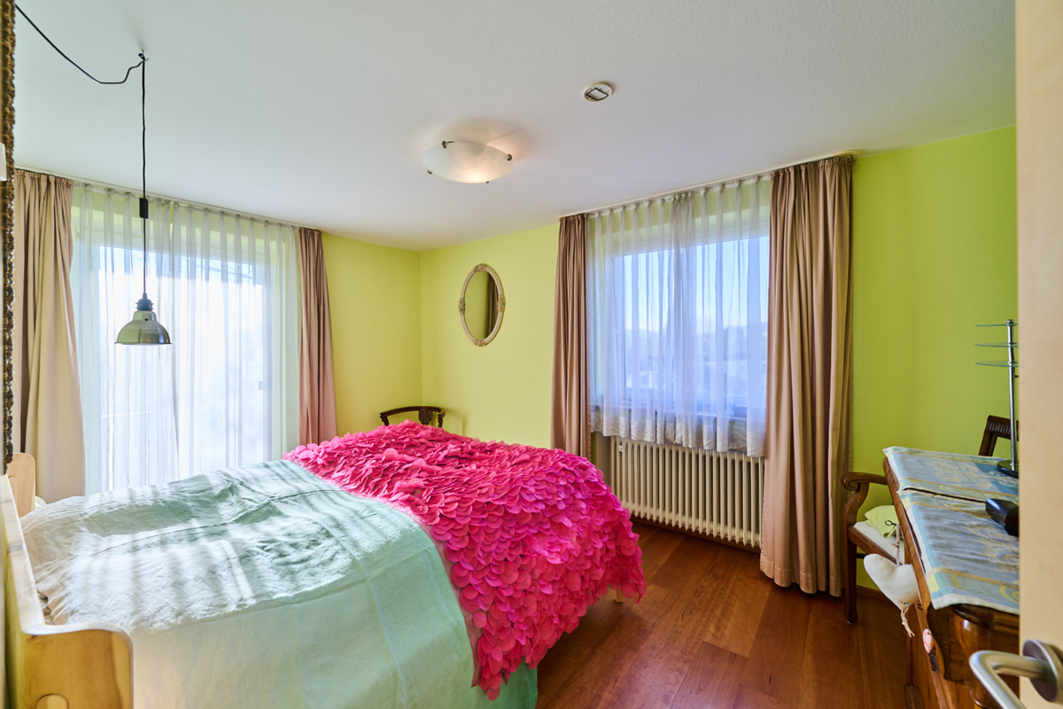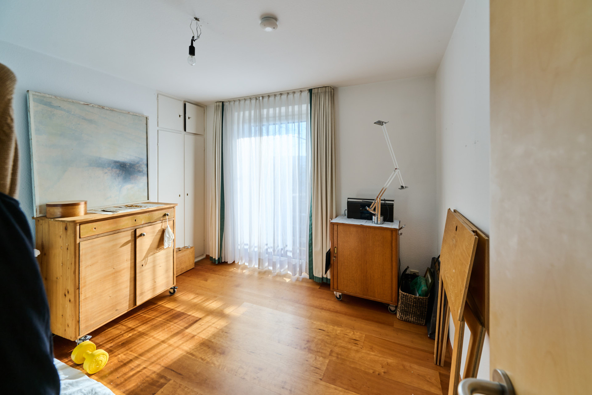 Die Wohn- und Schlafräume sind überwiegend mit Parkettböden ausgestattet, während in den Bädern und Sanitärbereichen pflegeleichte Fliesen verlegt wurden. Die Bäder und WCs stammen aus dem Baujahr und bieten daher Potenzial für eine individuelle Neugestaltung.