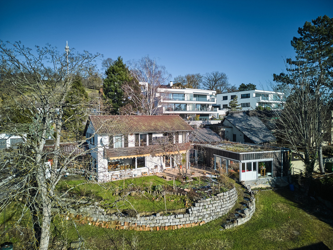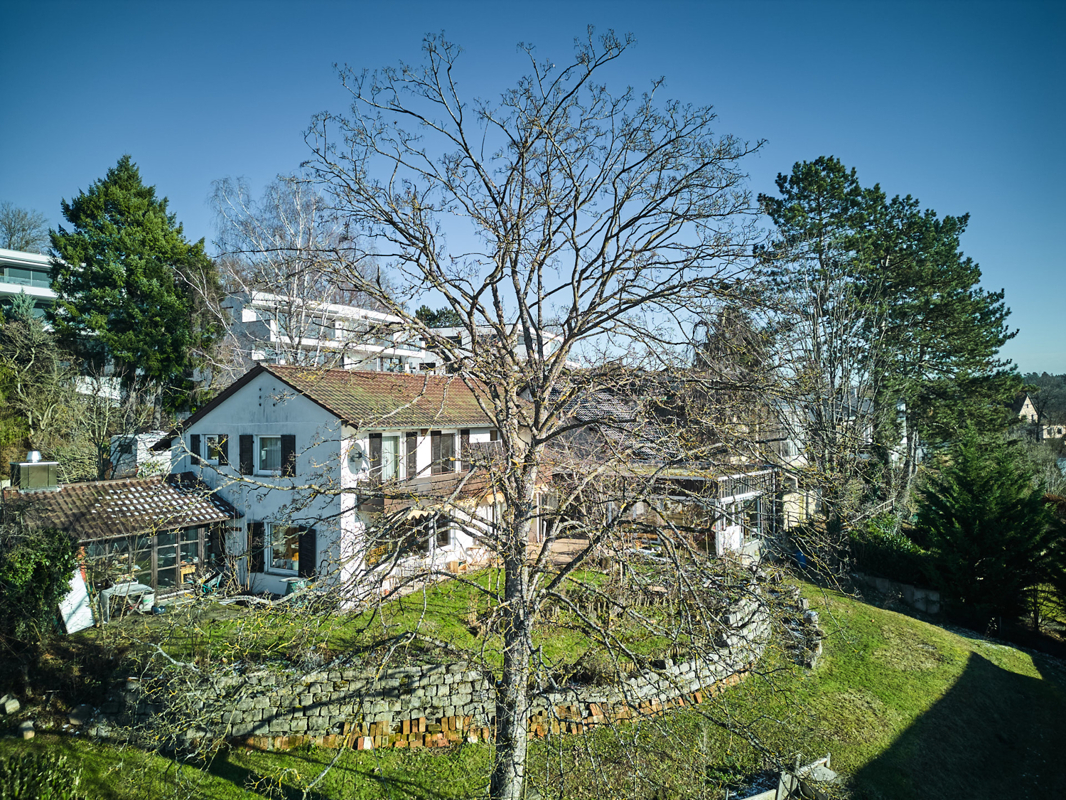 Das hier angebotene, sanierungsbedürftige Einfamilienhaus befindet sich auf einem 1.197 m² großen Villengrundstück in bester Südhanglage von Dettenhausen bei Tübingen. Das Grundstück gewährt einen herrlichen Blick über den Ort bis zu den Wäldern des Schönbuch. Die Umgebung zeichnet sich durch große Grundstücke und herrschaftliche Häuser mit großen Gärten aus.Dieses attraktive, aber sanierungsbedürftige Unternehmervilla wurde im Jahr 1956 erbaut und 1969 um einen Hallenbadanbau erweitert. Das Schwimmbad wird derzeit nicht genutzt, ist abgedeckt, so daß der Raum hier gewerblich genutzt werden kann. Das Haus bietet mit 250 m² Wohnfläche, die sich auf 6 Zimmer im Erd- und Dachgeschoss verteilen viel Platz für die ganze Familie. Im Untergeschoss des Hauses befinden sich die Technik- und Nebenräume, wie auch ein als Werkstatt ausgebauter, ehemaliger Hobbyraum.