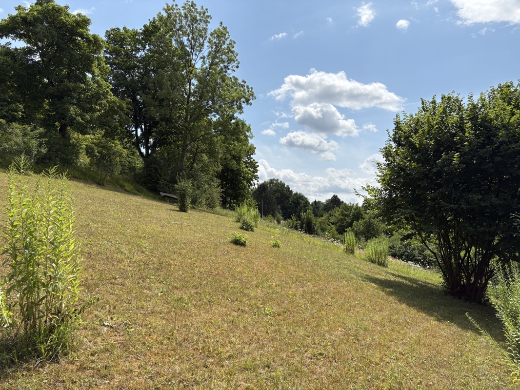 Das Grundstück ist aktuell als naturbelassene Wiesenfläche mit Sträuchern und Bäumen angelegt und fügt sich harmonisch in die umgebende Gartenlandschaft ein.