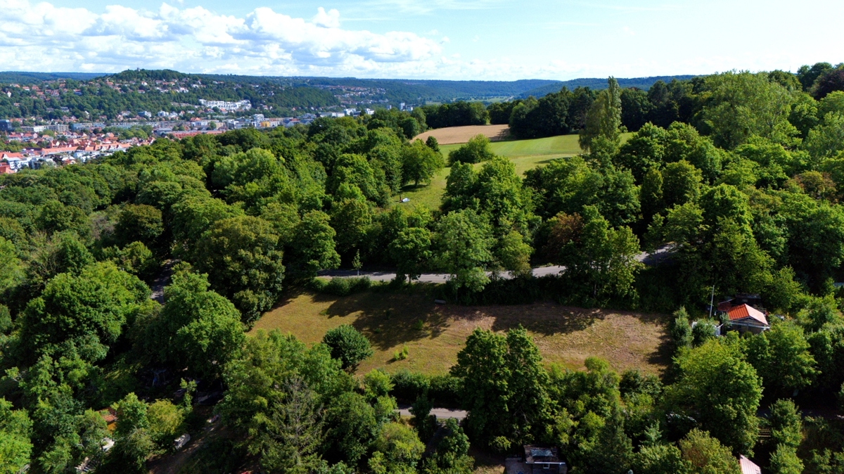 .Das ruhig gelegene Grundstück befindet sich in begehrter Höhenlage am südwestlichen Ortsrand von Tübingen-Derendingen, im Gebiet „Vordere Halde“. Die Lage zeichnet sich durch ihre naturnahe Umgebung, den alten Baumbestand und den unverbaubaren Fernblick über das Neckartal bis hin zur Schwäbischen Alb aus. In den Wintermonaten reicht der Blick sogar bis zur Altstadt und dem Tübinger Schloss. Die umgebenden Gärten und das ruhige Wohnumfeld schaffen eine besonders entspannte Atmosphäre – ideal für Erholungssuchende.