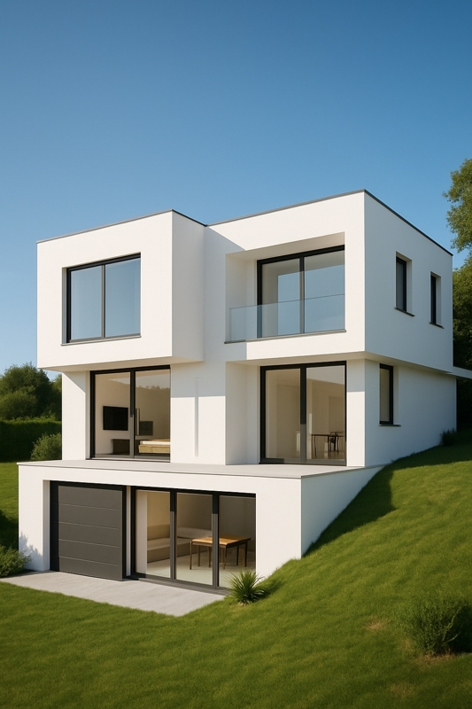 In ruhiger und sonniger Aussichtslage von Dettenhausen entsteht eine exklusive Neubau-Villa im eleganten Bauhausstil – individuell gestaltbar und mit traumhaftem Blick über den Ort bis hin zu den Wäldern des Naturparks Schönbuch.Die Villa wird in hochwertiger Massivbauweise „Stein auf Stein“ errichtet und überzeugt durch ihre moderne, klare Architektur mit kubischen Formen und großzügigen Glasflächen. Materialien, Licht und Raum verschmelzen zu einem harmonischen Gesamtkonzept und schaffen ein Zuhause mit Stil, Komfort und Persönlichkeit.